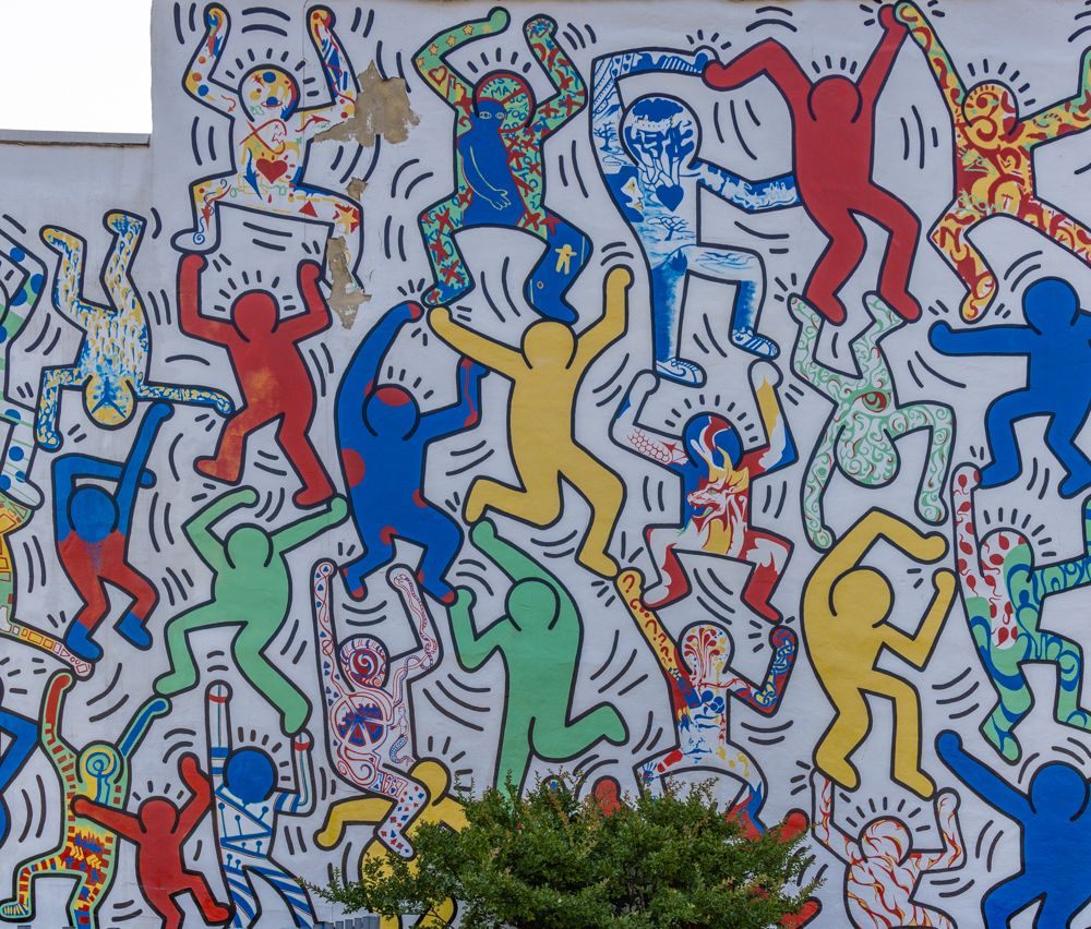 This morning I made two quick stops in Philadelphia before departing. I stopped at the Keith Haring mural, We the Youth , and at Philadelphia’s Magic Gardens . We the Youth is painted on the side of a building in a neighborhood in South Philadelphia. It is difficult to even see the whole thing, never mind take a photo of it just because of the physical location, and also foliage growing up around it. Still, it is an important piece of historical pop art. The mural was originally created in 19877 in collaboration with CityKids of New York and Brandywine Workshop in Philadelphia. It is the only Keith Haring collaborative public mural remaining intact and in its original site.