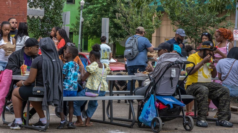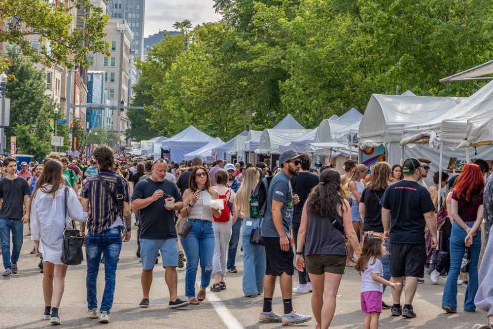 Families enjoying the food offerings at the Three Rivers Art and Music Festival
