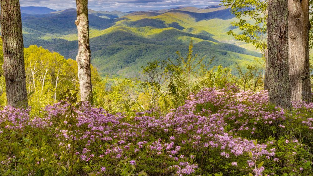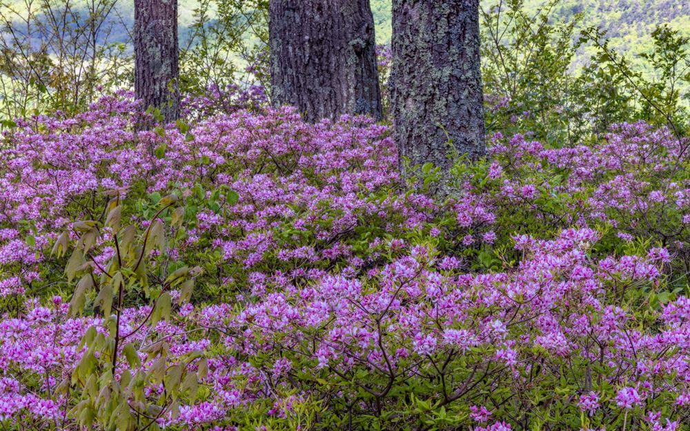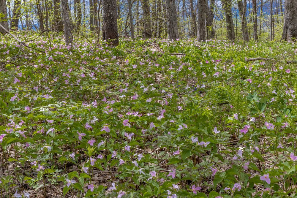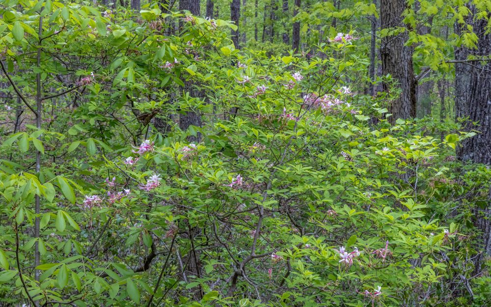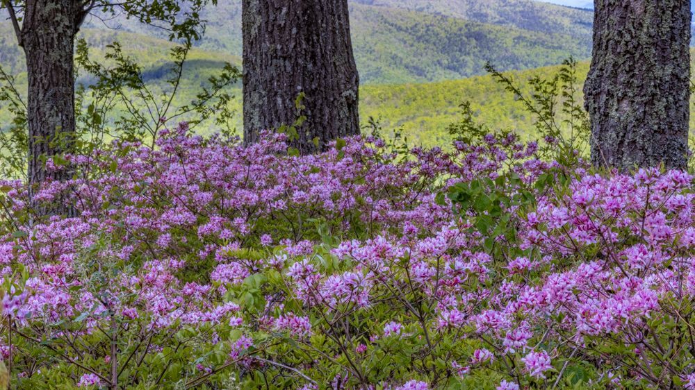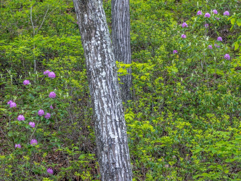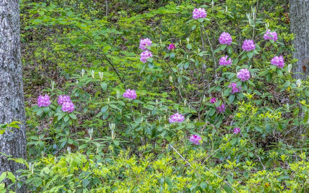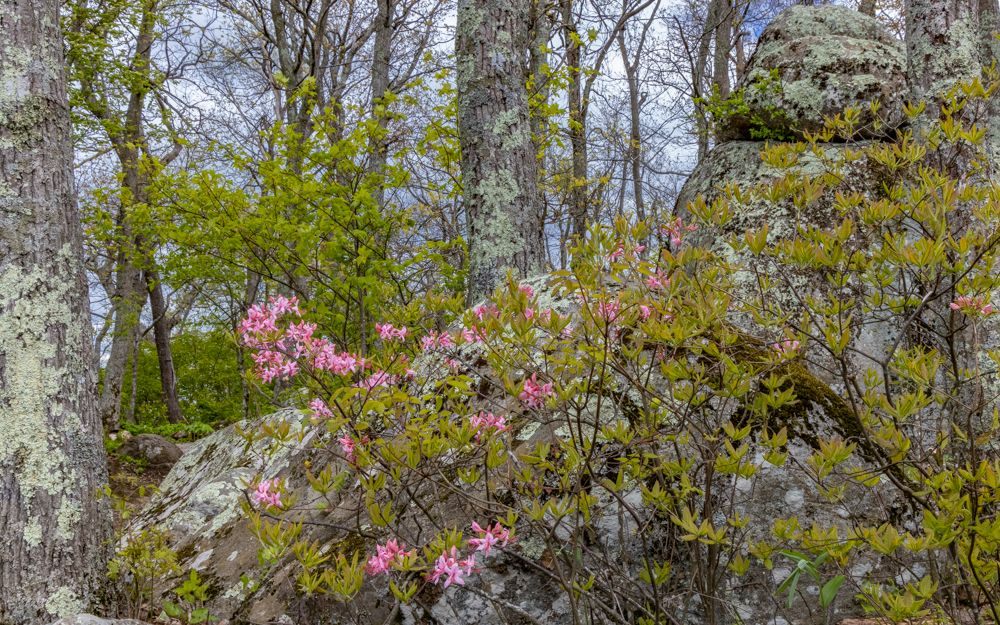 This morning I traveled from Richmond to Roanoke. I hopped on the Blue Ridge Parkway at its most northernly point, at Aston, and drove the Parkway the rest of the way. This was a very different experience than we had in the Asheville, NC area. It was a week later, much of this stretch was at a lower elevation, and of course I was a bit further North. All told, for much of the drive the trees were more leafed out, which makes for boring images. On the plus side, the Rhododendron, Azalea, Trillium and other wildflowers are in full bloom.