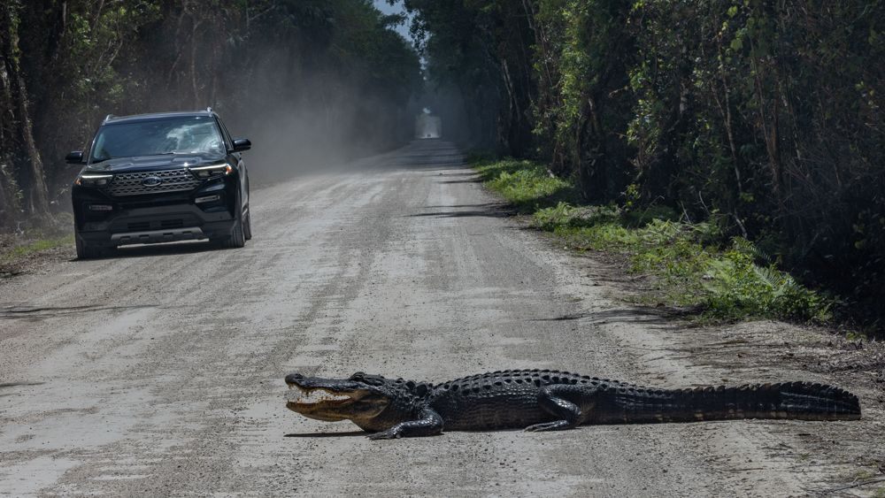 Alligator crossing the road, Big Cypress Wildlife Management Area