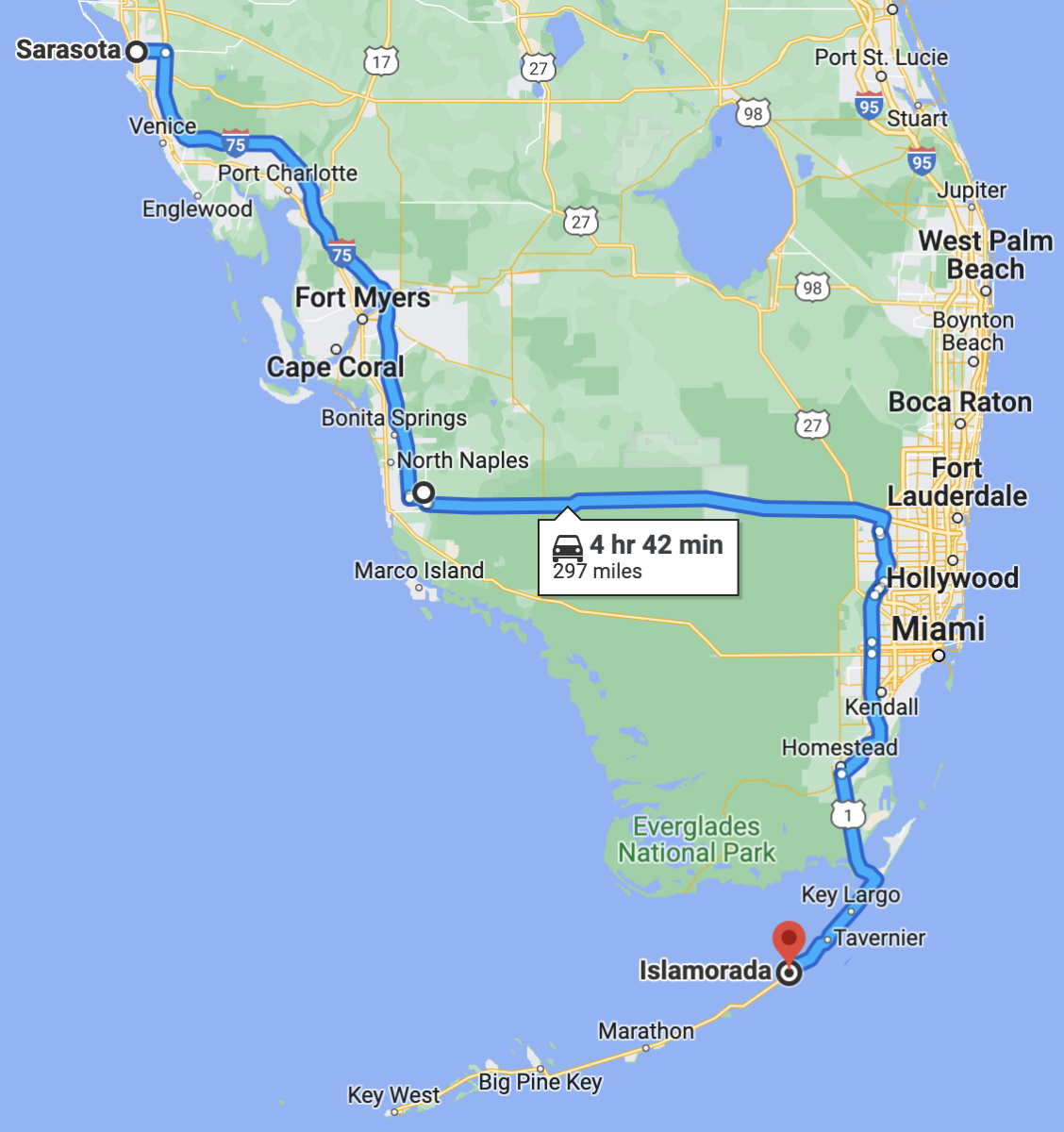 This morning I drove down the West Coast of Florida, then cut across on US Hwy 41 S before dropping down to the Keys.