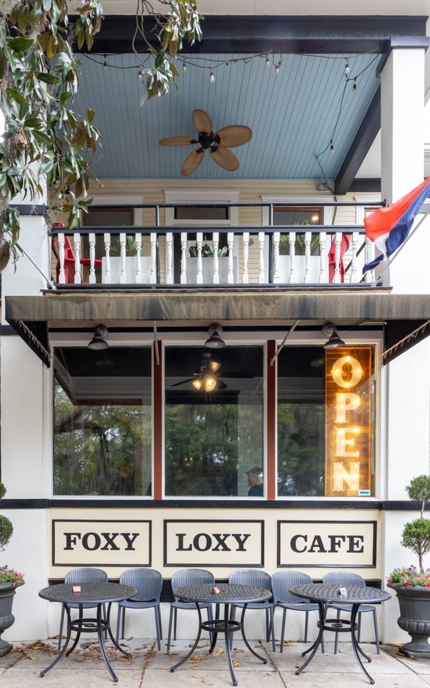 Foxy Loxy Cafe . This is a Savannah institution. It is located in an old house ad mixes coffee and baked goods with Tex-Mex offerings. I took the stairs up to the second floor balcony, where I enjoyed my coffee with a side of people watching down on the street.
