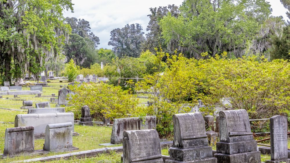 Laurel Grove cemetery . Many of the native Laurel Oak trees still remain to shade the graves I this cemetery.