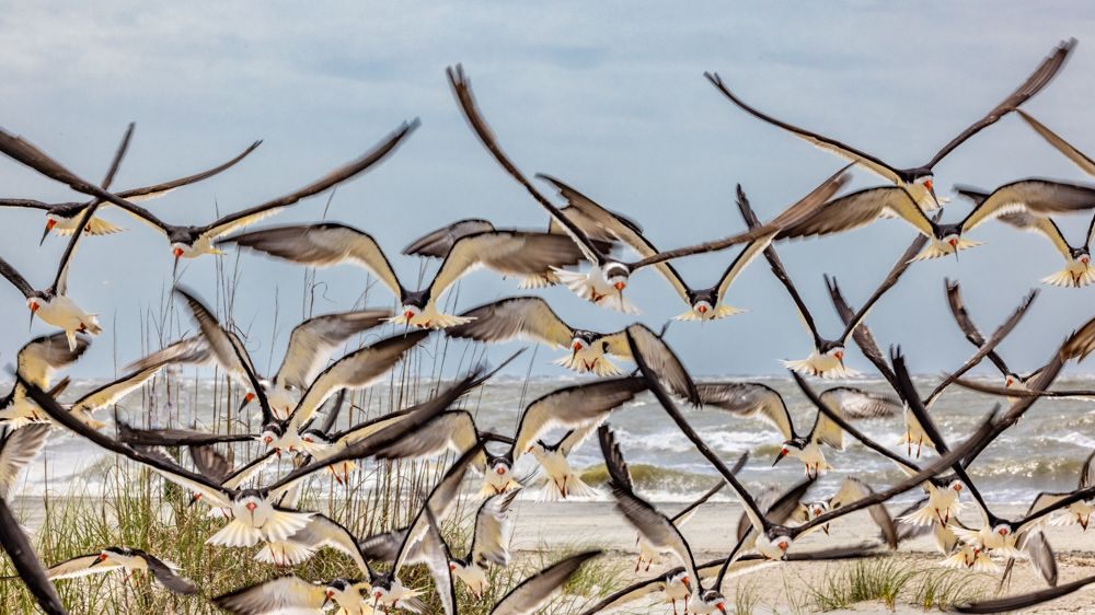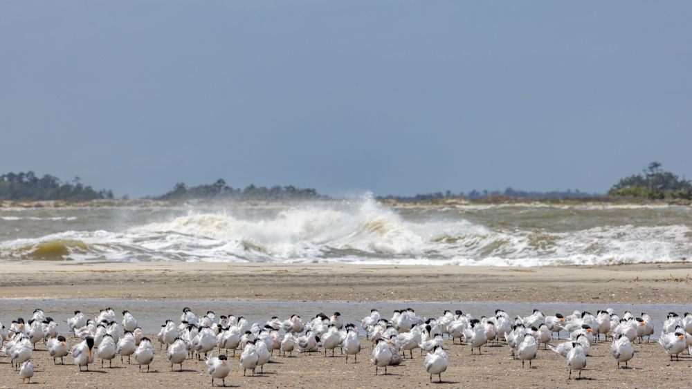 Warsaw National Wildlife Refuge , located on a barrier island, but finding passage on a boat to get out there turned out to be non-obvious. And with only two days, I noted it to visit another time. Tybee Island can be reached by car via bridges. It is a typical beach/surf town - laid back and funky. I spent some time on the South end of the island photographing the flocks of shorebirds and just sitting on a wooden bench swing enjoying the beach. I also spoke to Lisa and Andree (sp?) visiting from Toronto, and Phillip, visiting from Ohio.