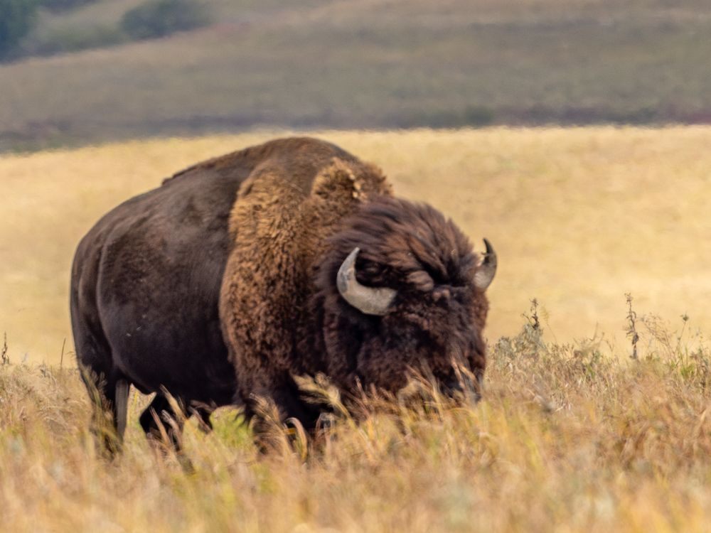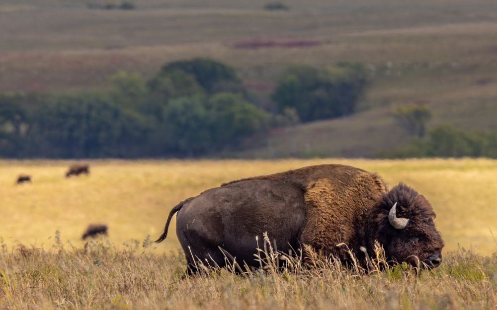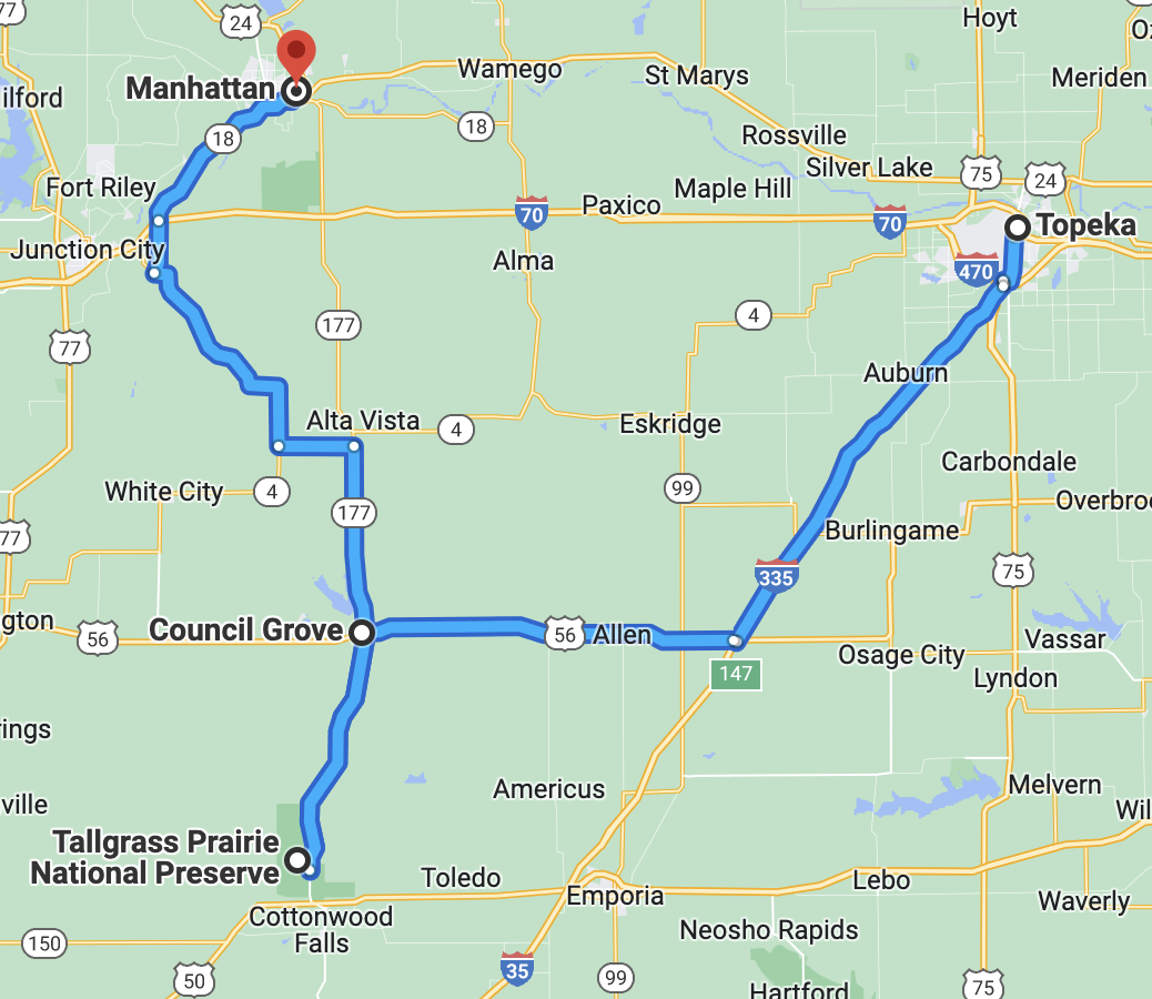 This morning I continued west, driving to Manhattan, KS by way of the Tallgrass Prairie National Preserve . I again met my friends Jeff, Onalee and Jillian at the preserve and we did a 6 mile out and back hike. We were graced with a few groups of buffalo, and on the way back we had a couple of single individuals that we had to skirt to make sure we maintained sufficient distance. They were pretty chill, but we wanted to make sure we stayed out of their way.