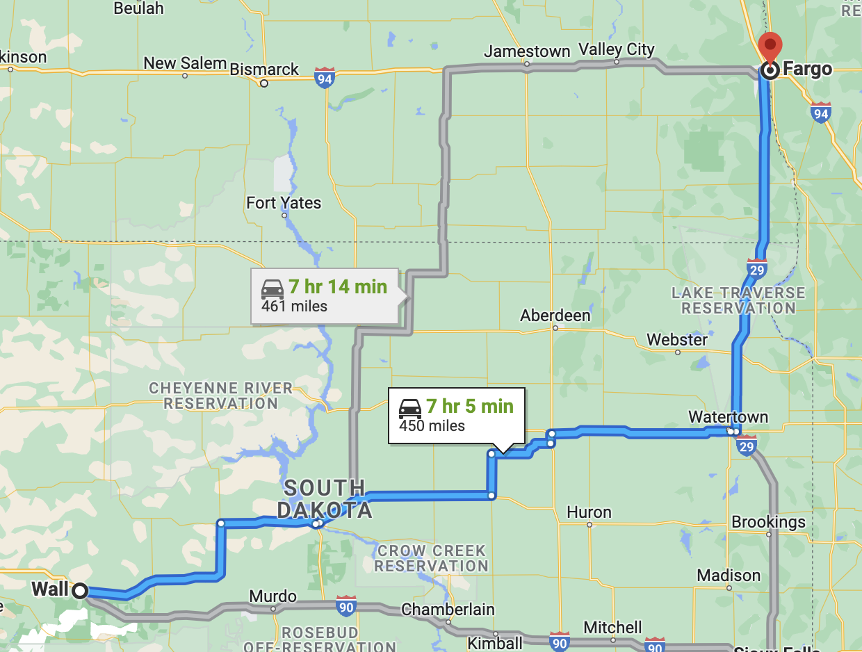 To break up the drive, I made a few stops. In addition to fuel and comfort breaks, I made two more substantive stops. I first stopped at Autozone in some town whose name I did not even notice. It was the largest of the small towns I passed through. I noticed yesterday that one of my tail lights was out. Not wanting to give anyone a reason to stop me, I wanted to take care of that ASAP. Although I do have an appointment at the Firestone in Fargo tomorrow to get my door fixed, I know they are very busy and I thought it would be easier to take care of the tail light myself. I mentioned to the very nice sales person that I thought I could probably change it myself. He immediately offered to come out and do it for me, which I gratefully accepted. I was relieved to check off one box. Then, Lucy II needed another bath. She had accumulated a good coating of slush and mud as I was driving around the Badlands, so I took her through a car wash just around the corner from the Autozone. This is the second time I have experienced a drive through car wash in this part of the country. The actually have two guys pre-washing the worst of the grime before you go through the automated part. All this for ten bucks.