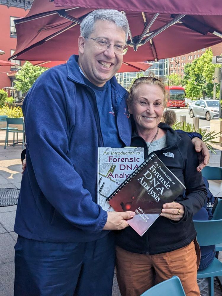 John Butler and his wife Terilynne for lunch at Founding Farmers. John is NIST Fellow & Special Assistant to the Director for Forensic Science. I’ve known John pretty much my entire career as we both entered the forensic DNA field when it was in its infancy in the early 1990s. John was headed to the airport to catch a flight to a meeting in Europe, but kindly made time to meet with me. I had not seen him in person since well before the pandemic, so it was very good to catch up. John, being John, brought old copies of books Keith Inman and I wrote over 20 years ago for me to sign. As well he presented me with a signed copy of his latest book, co-written with Suzanne Bell,