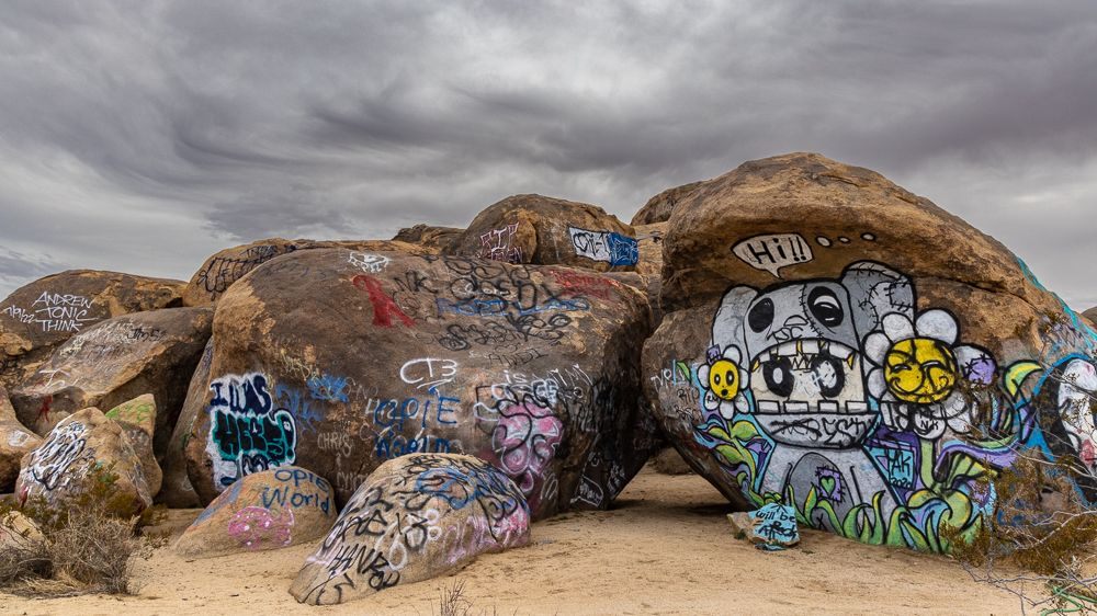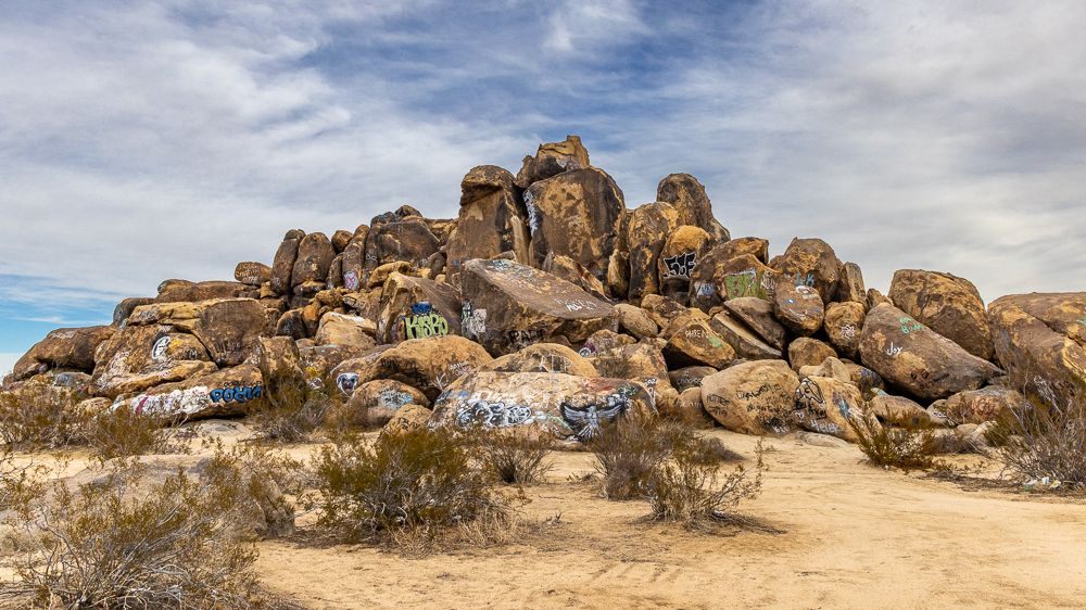Graffiti boulder pile along Old Woman Springs Road