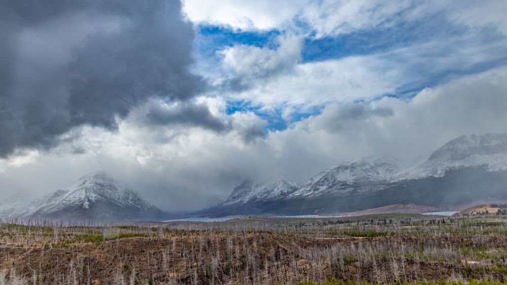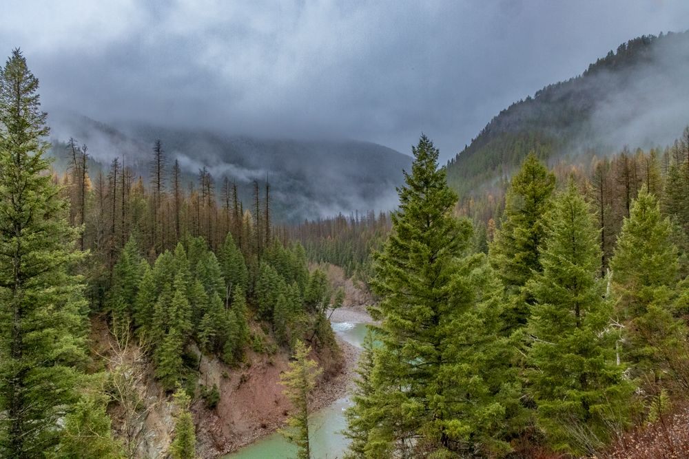 There is no way to soft-pedal it, today was just dismal. When I looked at the weather prediction this morning, it looked like a rain shower around 7 AM and cloudy the rest of the day. Since the Road-to-the-Sun - the main road through Glacier National Park is closed for the season, I thought I might drive the roads to the South and East to see if I could at least get some views. As I started driving at first light, the light rain soon turned into a downpour. As I climbed in elevation, it did briefly turn to snow, but it never stopped. The mountains were barely visible through the gloom.