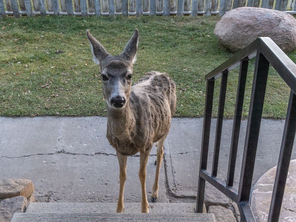 Deer on the steps to my room. I think she would have come in if I had let her. This is not a good thing - obviously people are feeing them.
