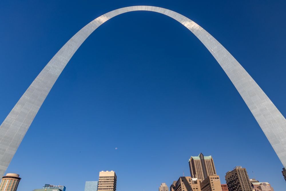 Beginning in 1935, the riverfront area of St. Louis saw its most dramatic transformation yet . It was designated the Jefferson National Expansion Memorial by executive order and its ownership was transferred to the National Park Service. The park service had big plans to revitalize the riverfront district with a grand monument to honor St. Louis’s role in westward expansion, but first, they wanted a clean slate. The buildings along the riverfront were demolished and the ground leveled. Construction of the stainless steel Gateway Arch structure began in 1963 and was completed in 1965. It now stands as a highly visible symbol of St. Louis.